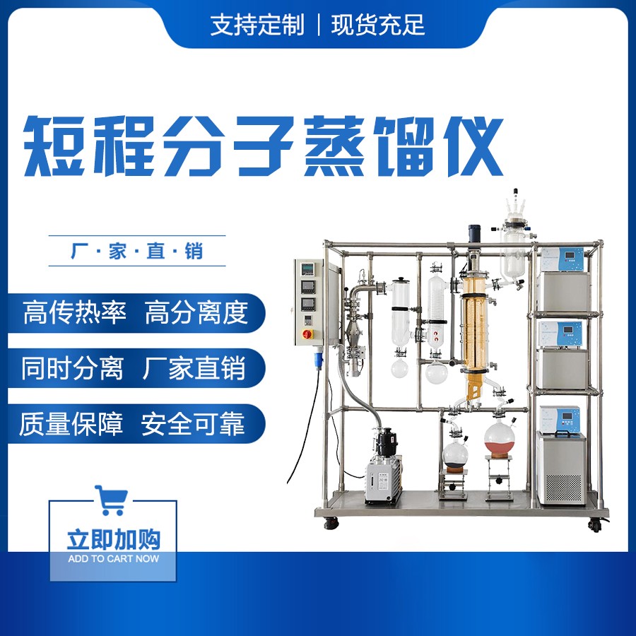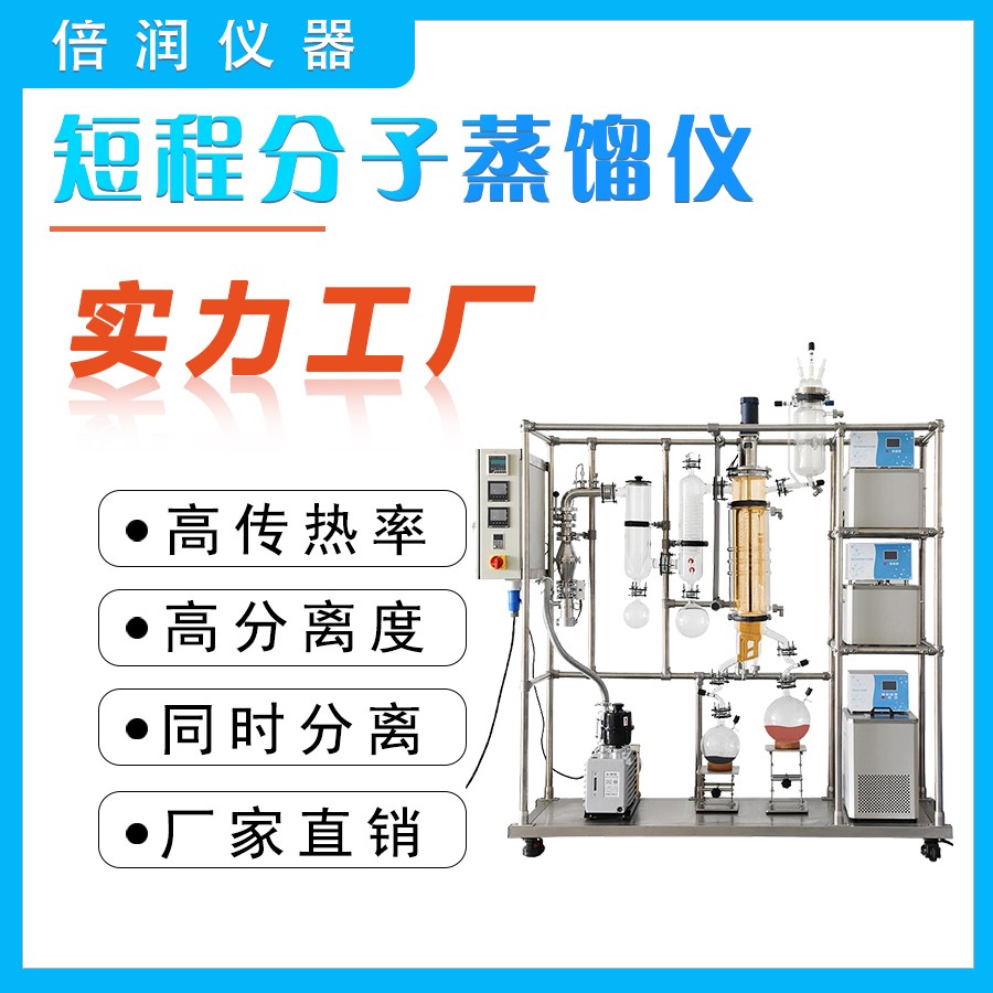 簡介: 短程分子蒸餾儀是一種特殊的液--液分離技術(shù),在高真空狀態(tài)下,使蒸氣分子的平均自由程大于蒸發(fā)表面與冷凝表面之間的距離,從而可利用料液中各組分蒸發(fā)速率的差異,對液體混合物進(jìn)行分離。 短程分子蒸餾儀材質(zhì)高硼硅玻璃,蒸發(fā)面積有 2㎡、5㎡,真空度可達(dá)0.1 Pa,蒸餾溫度可達(dá)250℃ 。針對客戶需求,還可定制不同結(jié)構(gòu)的成膜裝置、進(jìn)料裝置和出料裝置,如輥輪/刮板成膜、全保溫針閥進(jìn)料/齒輪泵進(jìn)料、中間接收器加燒瓶出料/齒輪泵出料等。 主要特點: 1.KBTL5,模塊化設(shè)計,根據(jù)用戶所需進(jìn)行配置。 2.蒸發(fā)器為硼硅玻璃制品,多層夾套設(shè)計制造,斜位出料。采用導(dǎo)熱油加熱,整個蒸餾過程,如物料的進(jìn)入、膜的分布、餾分液滴的形成、攪拌裝置的轉(zhuǎn)動等可以直覺觀測,照相或全程錄像。針對特殊物料可以對重組分、輕組分設(shè)計單獨夾套,確保物料的流動性。 3.進(jìn)料方式可選擇側(cè)位進(jìn)料,進(jìn)料器位置較低,加料方便。針對輕組分含量較多的物料還可以單獨設(shè)計脫氣單元,避免蒸發(fā)時飛濺發(fā)生,避免污染輕組分。還可以選擇頂位進(jìn)料的方式,物料從蒸發(fā)器頂部進(jìn)入分液盤,一次離心成膜,之后二次機(jī)械成膜,獲得更好的成膜效果和蒸發(fā)效率。 4.玻璃針閥進(jìn)料容器,精確螺紋微調(diào)玻璃針閥來調(diào)節(jié)進(jìn)料速度。也可以根據(jù)物料屬性選配隔膜泵或齒輪泵進(jìn)料,進(jìn)料速度更穩(wěn)定。 5.三層玻璃結(jié)構(gòu)流道冷阱,進(jìn)氣口與出氣口在等高位置,內(nèi)部流道強制氣體流向,保證氣體與強冷面的充分接觸。 6.重組分出料單元,配置接收燒瓶;餾分出料單元,配置接收燒瓶。還可以根據(jù)需求選配多組分收集器或中間接收器出料一級齒輪泵在線連續(xù)出來哦。 7.真空系統(tǒng)標(biāo)配一級旋片泵;可選配二級擴(kuò)散泵,極限真空可達(dá)0.1帕;還可以選配真空切換裝置,實現(xiàn)單*級泵工作或一級泵二級泵串聯(lián)工作,延長二級泵使用壽命。 8.成膜電機(jī)攪拌成膜速度60~500rpm連續(xù)可調(diào)。 9.根據(jù)用戶需求配置不同溫度的蒸發(fā)單元加熱器、進(jìn)料加熱器和重組分出料加熱器以及內(nèi)冷凝加熱制冷單元。 10.各玻璃配件間連接接口均為球口密封圈連接方式,快拆快裝安全方便并密封可靠。 11.攪拌成膜速度、溫度、真空等參數(shù)LED可數(shù)字顯示,實時觀測調(diào)整。蒸發(fā)溫度從室溫到220℃可調(diào),進(jìn)料器、重組分出料、內(nèi)冷凝可根據(jù)實驗需要單獨溫控。 原理介紹: 分子蒸餾是一種在高真空下操作的蒸餾方法,這時蒸氣分子的平均自由程大于蒸發(fā)表面與冷凝表面之間的距離,從而可利用料液中各組分蒸發(fā)速率的差異,對液體混合物進(jìn)行分離,的特殊結(jié)構(gòu)可以非常有效的控制其物料的快速以及連續(xù),主要以薄膜形式通過設(shè)備的表明進(jìn)行加熱。在使用的過程中其物料在設(shè)備里面所停留的時間是非常短的,這樣的設(shè)備裝置也非常合適其高粘度的物料。 應(yīng)用領(lǐng)域: 精細(xì)化工、醫(yī)藥領(lǐng)域、食品行業(yè)、石油行業(yè)、日用化學(xué)、環(huán)保領(lǐng)域等等。